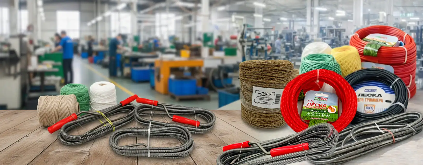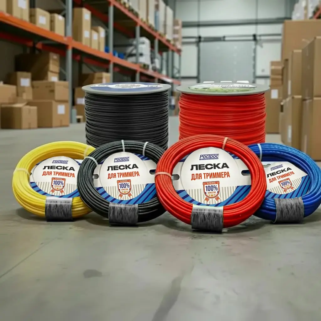 С 2008 года компания РосТрос производит товары хозяйственного назначения: Тросы сантехнические, шпагат полипропиленовый, шпагат джутовый, нить полипропиленовая, леска рыболовная, леска для триммеров и газонокосилок.