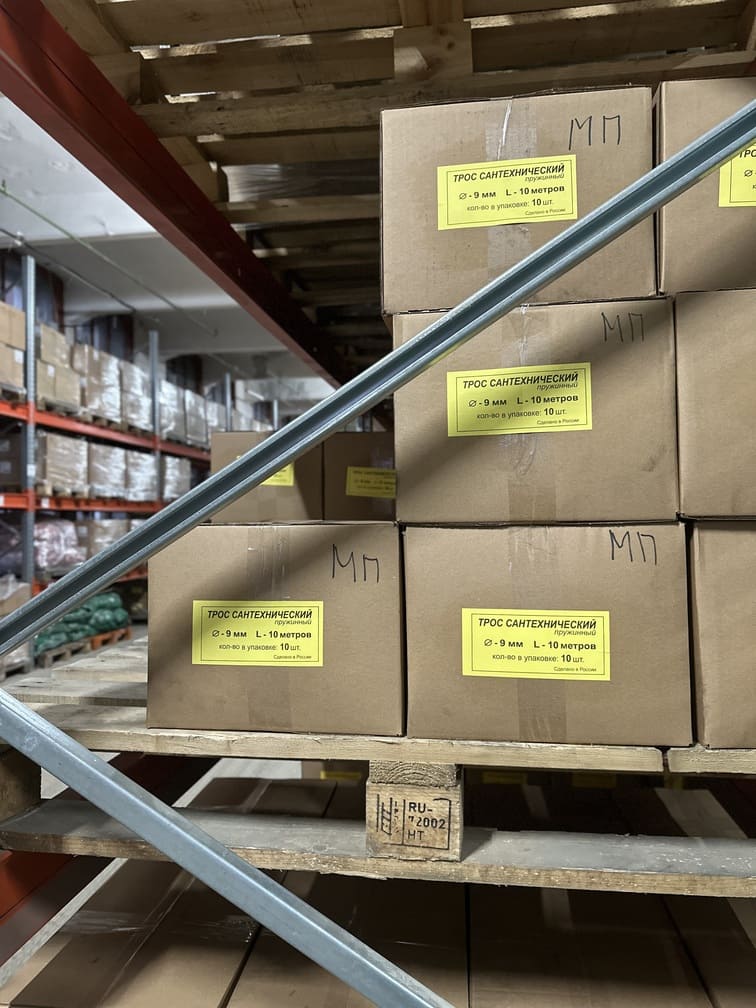 Компания Рострос располагает современным складским комплексом площадью более 1000 м², специально оборудованным для хранения и отгрузки всего ассортимента нашей продукции: сантехнических тросов, полипропиленового и джутового шпагата, полипропиленовой нити, триммерной и рыболовной лески.